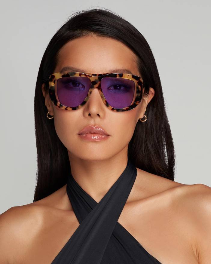 Cool-girl Karley isn't afraid of turning heads. The Karley glasses' oversized geometric frames are all about life without compromise. And when Karley plays Truth-Or-Dare, she always chooses Dare. After all, a girl must keep some secrets. Who knows what mischief you're hiding behind those bold angular frames? Purple tinted sunglasses Oversized shape Mock tortoiseshell frames Discreet Agent Provocateur logo 100% UVA & UVB Protection