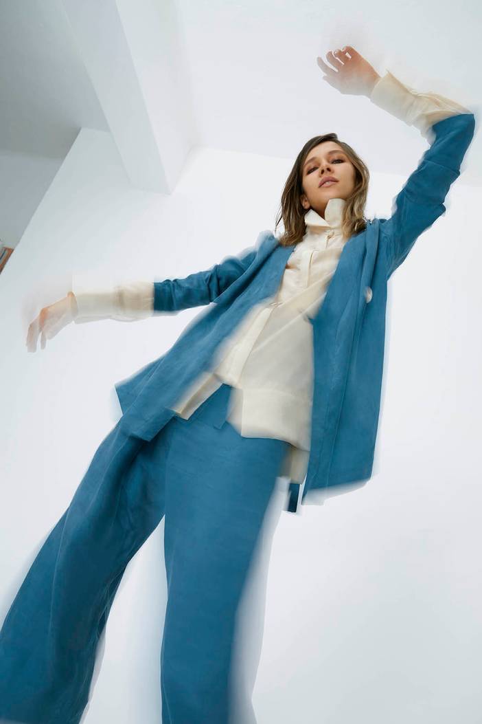 Dvaita Chandra Blazer presented in TENCEL ™ Luxe cultivated with sustainable production processes.