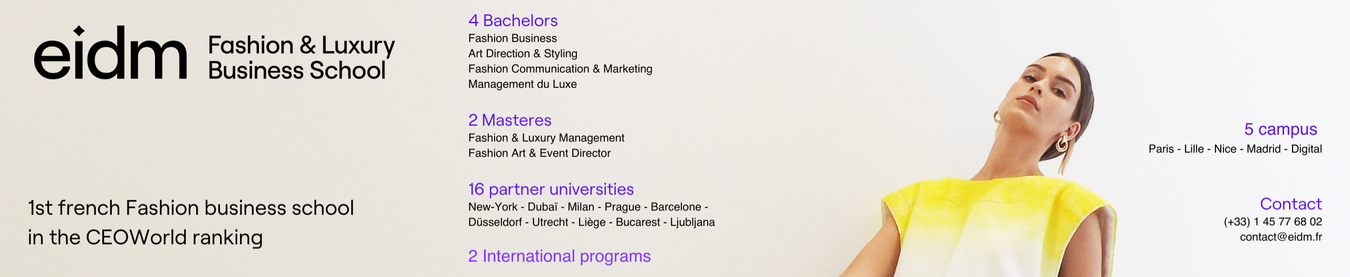 Pioneer and visionary, the International Fashion & Luxury Business School - EIDM aims to provide professional courses related to image, styling, art direction, communication, marketing and in the business of fashion and luxury. We offer a wide range of programs that adapt to each individual’s career path, from bachelor’s to master’s, in-class or e-learning. The common point remains excellence and pedagogical innovation.