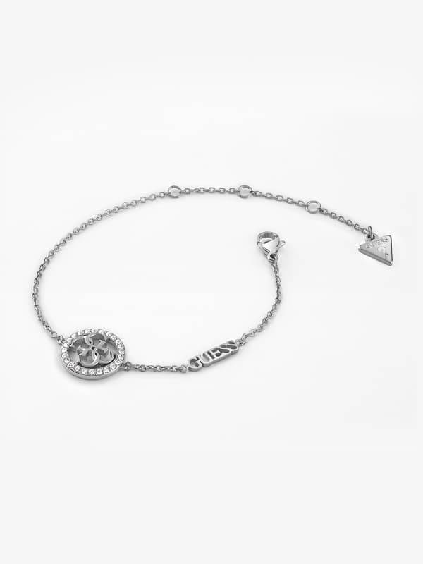 Armband aus plattiertem Stahl.Kettenstruktur.4G-Logo-Charm.Besatz Cubic Zirkonia.Verschluss mit Karabinerhaken.Länge: 14,6 cm, mit Zusatzkettchen 3,8 cm.Durchmesser Charm: 11 mm.
