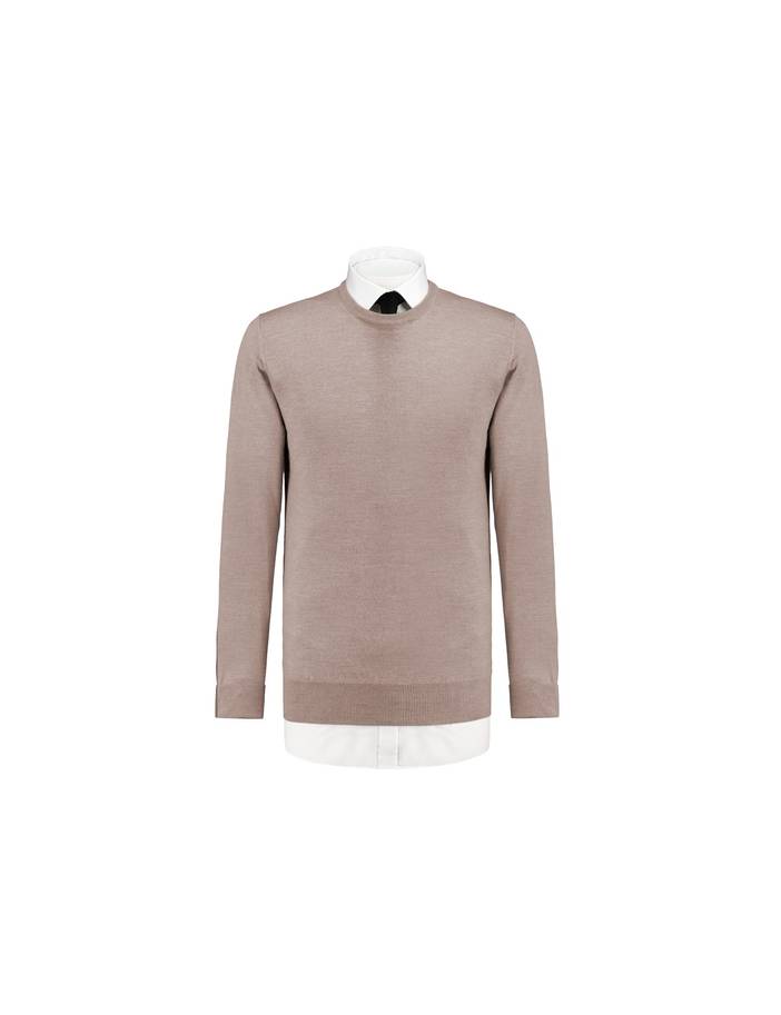 This men's beige jumper has been beautifully crafted from 100% merino wool. It features a classic round neck and is designed with a slim fit, creating a contemporary look for modern gentlemen. Hawes & Curtis Men's Slim Fit Round Neck Jumper in Beige | 2X-Large | Italian-Made Merino Wool