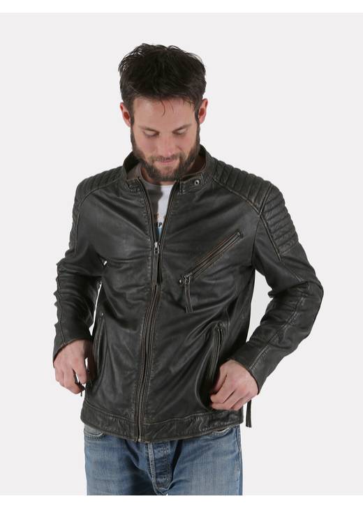 Diese Lederjacke besitzt eine schräg laufende Brusttasche, zwei seitliche Einschubtaschen mit Reißverschluss und zwei Innentaschen mit verstecktem Reißverschluss. Der Knopfverschluss am Rundhalskragen bildet im Zusammenhang mit den sauber eingearbeiteten Ziernähten eine fein abgestimmte Lederjacke für Herren. Sie wird über einen Reißverschluss geschlossen und ist gerade geschnitten. Ein Muss in jeden Herren Kleiderschrank!
