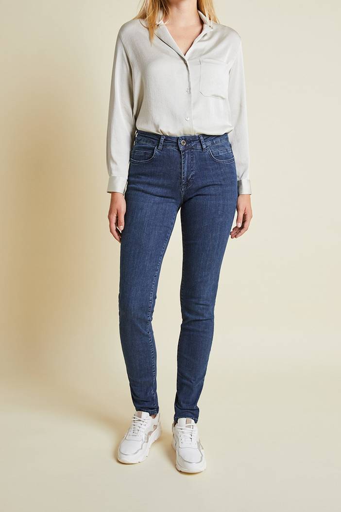 Celine heeft een hoge taille met een skinny fit. Dit betekent dat de broek om het bovenbeen aangesloten zit en vanaf de knie smal toe loopt naar de enkel. Celine is een 5-pocket basis model verkrijgbaar in de lengtes L30 en L32.