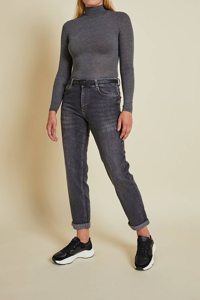 Bobby is een stoere jeans met een hoge taille en rechte broekspijp. Vanaf de knie loopt de pijp recht naar beneden waardoor hij wat losser zijn om je kuit zit. Dankzij de omgeslagen broekspijp staan je sneakers extra leuk onder dit model. De imitatielederen riem is een echte eyecatcher.