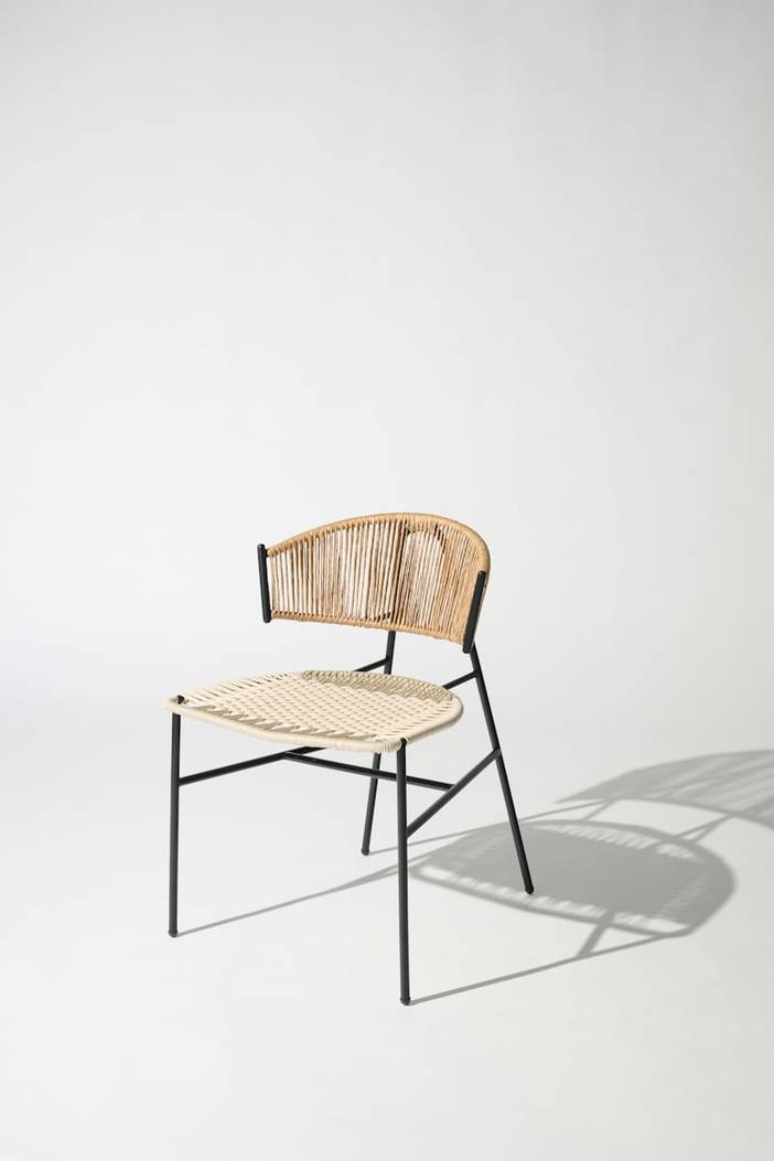 The "Magdalena Armless" chair from Tucurinca is handcrafted in Colombia by weavers. The backrest of the chair is made of paper cord and the frame is made of powder-coated steel. The seat is hand-woven in cord. The chair is designed for indoor use only.