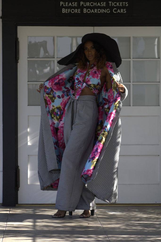 Telio Houndstooth Coat & Pants Set w/Floral Top