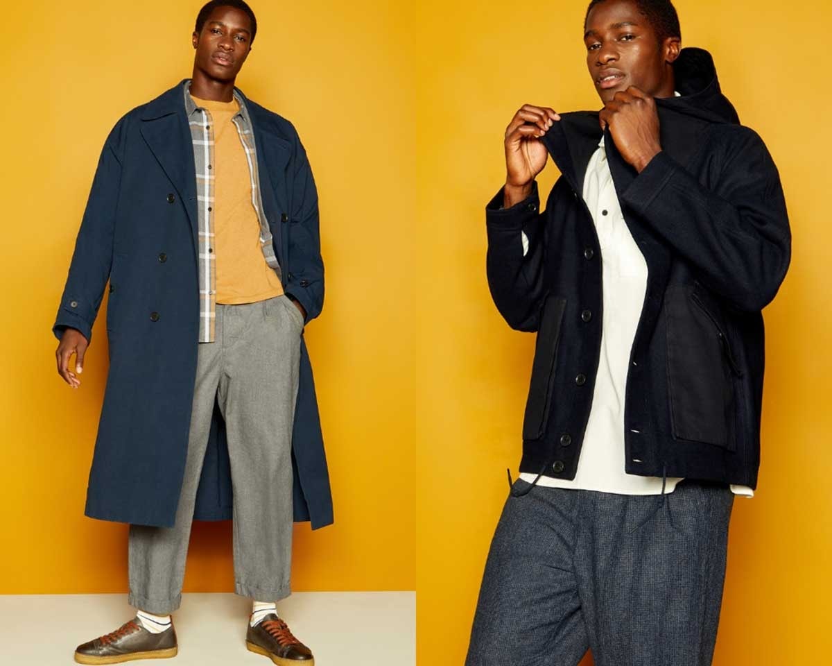 The HCFG x Debenhams collection sports an organic colour palette, with bases of navy and grey injected with spicy hues of mustard, while the silhouettes are relaxed and oversized, making the fit key to the collection, with clear references to workwear detailing in a combination of wool blends and pure cottons.