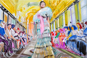 The Historic Award documented a fashion moment of the past or present, possibly a behind-the-scenes image, or a capture of a beloved fashion show, which allowed modern audiences to imagine the time, place and atmosphere. This category’s winner, Katarina Holkova, conjured up the unique energy of the runway experience in her submission which one judge described as “an incredible piece that feels simultaneously historic and contemporary. A real fashion moment. Love the hyper realistic model juxtaposed with the light touch rendering of the audience, how this directs the gaze to the moment, the sense of history unfurling. Really clever.” Holkova also claimed this year’s overall prize.