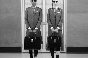 All these years of evolving the tailored suit, playing with proportions, incorporating vintage inspiration, to focus on appealing to a younger generation have presented endless challenges. Rewarding collaborations with brands as diverse as Moncler and Brooks Bros have financially bolstered his business, yet retail’s ups and downs have not left him unscathed. Career defining moments he remembers include his first collection being picked up by Parisian boutique Colette and Bergdorf Goodman, but the lows don’t get much lower than his 2009 bankruptcy. Although his company is now majority-owned by Ermenegildo Zegna Group, Browne feels beholden to no one and retains full control. The sacrifices are part of the process. “I could never do this again so I had to do everything to keep it going,” he says.