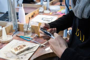 BAJ jewellery design and manufacturing diploma students used peridot stones donated by Fuli Gemstones to create a piece of jewellery. Students researched the history of the stone they were given and they were given the task of reinterpreting it with a modern twist for the exhibition.