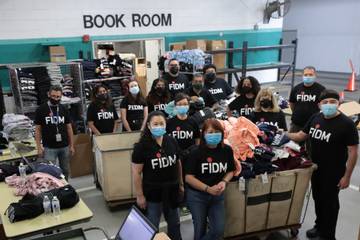 The FIDM donation consists of 16 pallets packed with school sweatshirts, T-shirts, sweatpants, blankets, hats, stuffed animals, toys, rattles, baby bottles and water bottles. All of these essentials add up to a total value of 298,000 dollars (about 269,000 euros).