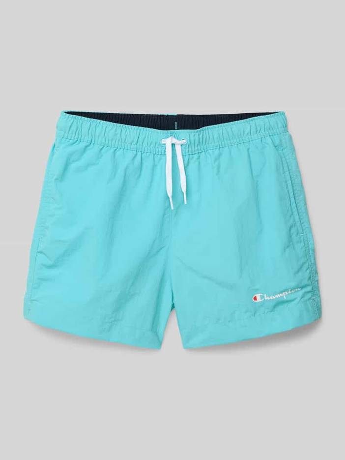 Zwembroek van CHAMPION voor kinderen;Recht model;Elastische band;Tunnelkoord;Labelprint;Franse steekzakken