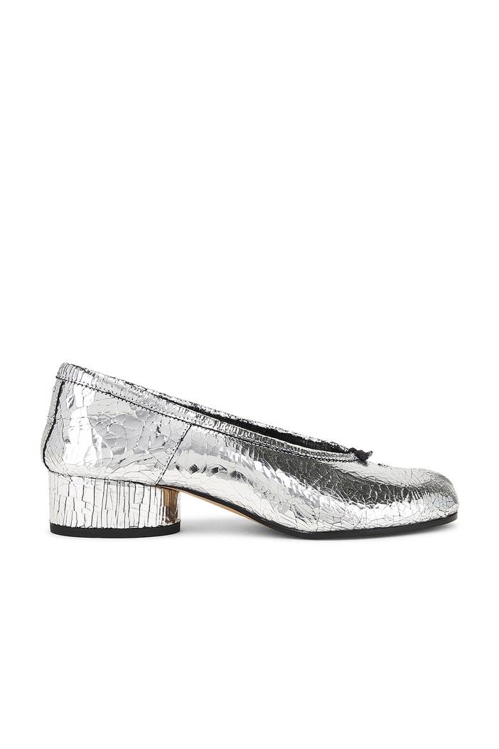 Maison Margiela HIGH-HEELS in Silber - Metallic Silver. Size 36.5 (also in 37.5, 40). Obermaterial Leder in Metallic-Optik. Ledersohle. Schnallenriemchen oben. Fußbett sowie Futter aus Leder. Zehenpartie in Tabi-Form. Blockabsatz. Circa 13mm/ 0.75 Zoll Absatz. About the designer: Nach seinem Abschluss an der Antwerpener Royal Academy of Fine Arts, wo er neben den Antwerp Six studierte, arbeitete der belgische Designer Martin Margiela mit mehreren bemerkenswerten Designern zu zusammen, darunter Jean Paul Gaultier, bevor er 1989 seine gleichnamige Linie gründete. Der für seine extreme Zurückhaltung bekannte Margiela hat sich einen Namen für seinen avantgardistischen Ansatz zur Mode und die Kunst der Dekonstruktion gemacht. Obwohl Margiela das Unternehmen nicht mehr aktiv leitet, rüttelt die Kollektion weiter an den Grenzen der zeitgenössischen Mode.