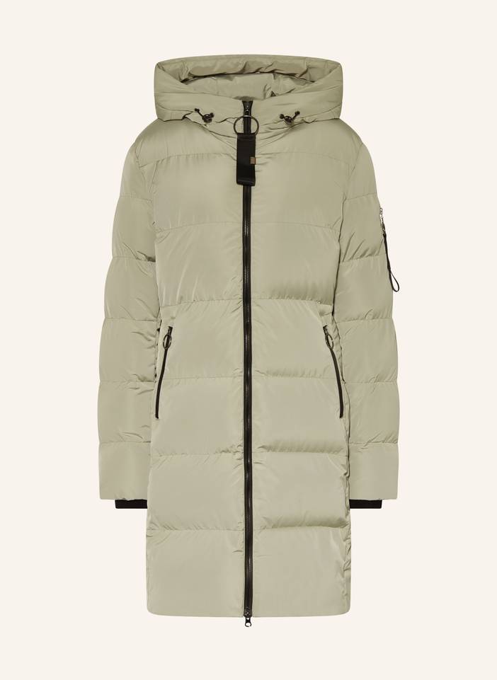 . Gerader Schnitt. Kapuzenkragen mit Tunnelzug und Kordelstopper. Schließt mit unterlegtem Zwei-Wege-Reißverschluss. Reißverschlusstaschen. Tasche am Ärmel. Glattes Innenfutter. Synthetische Füllung. Matt glänzende Optik