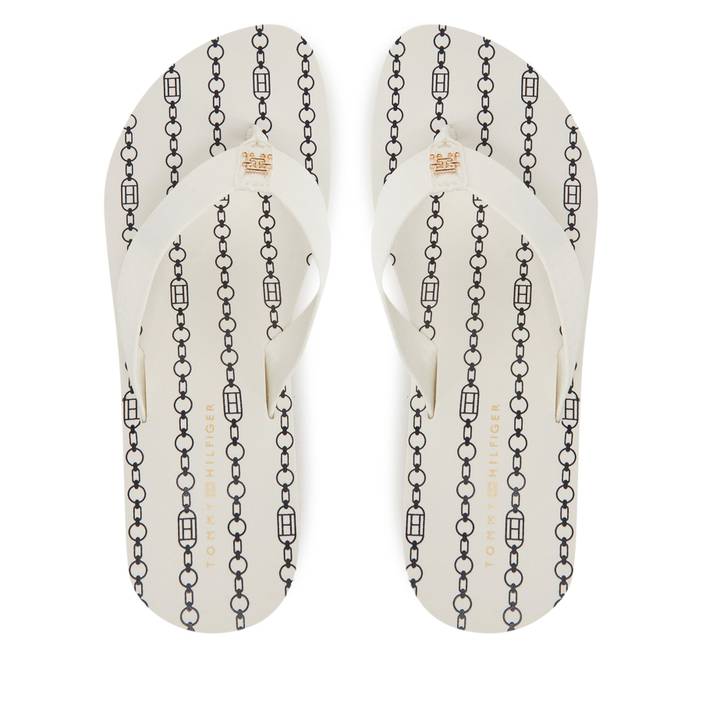 Zehentrenner Tommy Hilfiger Im Th Chainprint Midwedge Sandal FW0FW08527 Weiß
