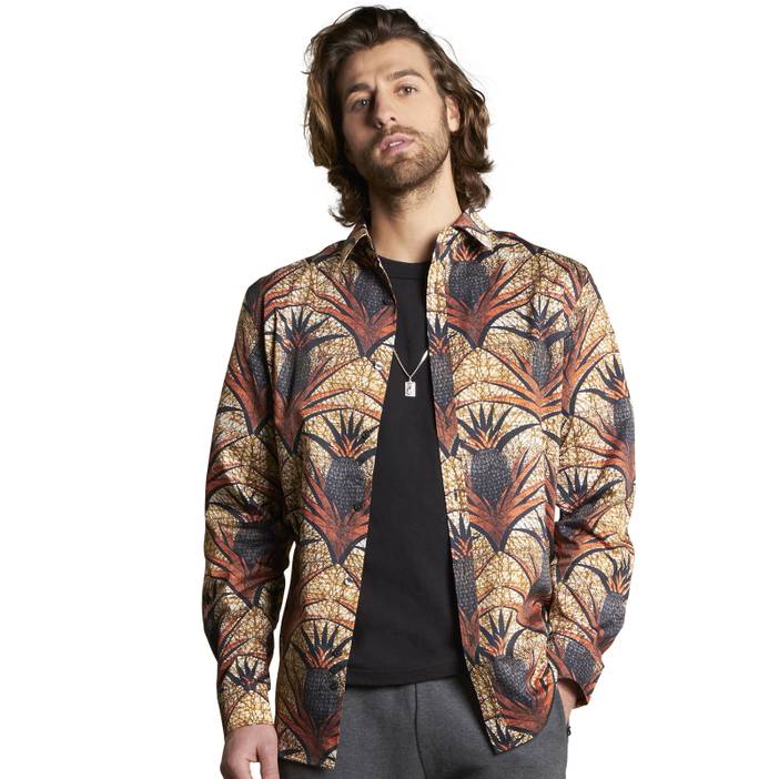 superb cotton cloth in satin weave for an excellent luxurious feel high quality manufacturing comfort fit single cuffs AFFASO shirts are created based on the heritage of hand made wax prints with timeless characteristics. Colours, patterning and ‘perfect imperfection’ are key. AFFASO blends the past and contempary by using digital printing techniques.