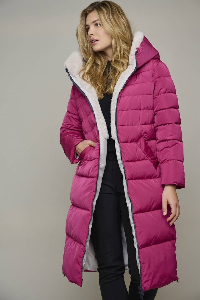 This comfy long coat with faux fur lining will definitely keep you warm and stylish during winter times. This padded coat features a design with zipper closure, two front pockets with snap button closure, a high neck collar with hood and slit zipper details on both sides which makes it easy to move and protect you from the cold weather. A musthave coat!