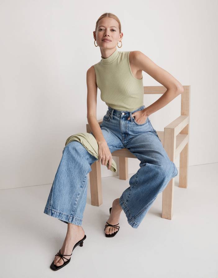 Sleek and sleeveless, this ribbed turtleneck goes with just about everything in your closet. Pair it with the matching cardigan for a cozy-cute twinset moment.Body length from high point of shoulder: 20 1/2" (based on size M).Polyester/cotton/rayon/elastane.Machine wash.Import.