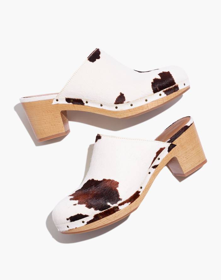 Made of touchable printed calf hair, these real-deal clogs have old-school wooden soles (wear with cropped jeans or a midi dress for a true vintage look). And, cushiness alert: Our MWL Cloudlift Lite padding feels like walking on a...well, you know. When you select your size, "H" equals a half size.2 1/2" heel.Calf hair upper.Leather lining.Man-made sole.Import.Madewell.com only.