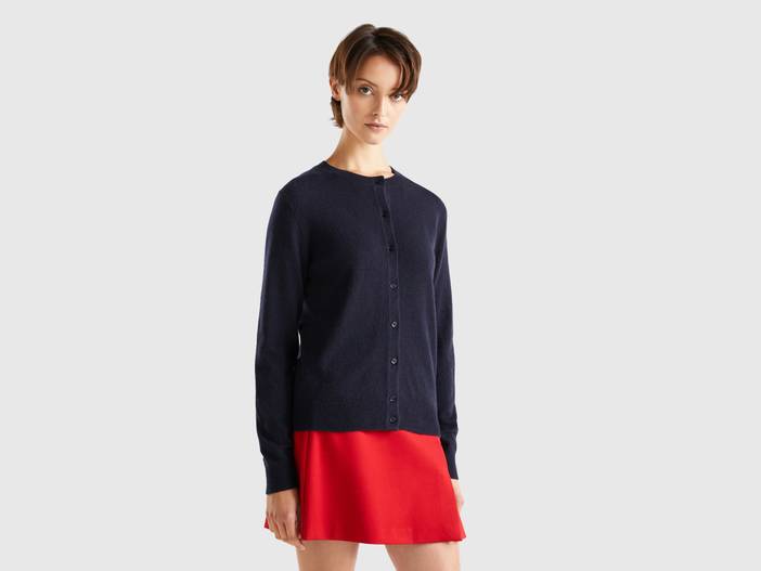 Benetton, Dunkelblauer Cardigan Aus Reinem Cashmere, größe L, Dunkelblau, female