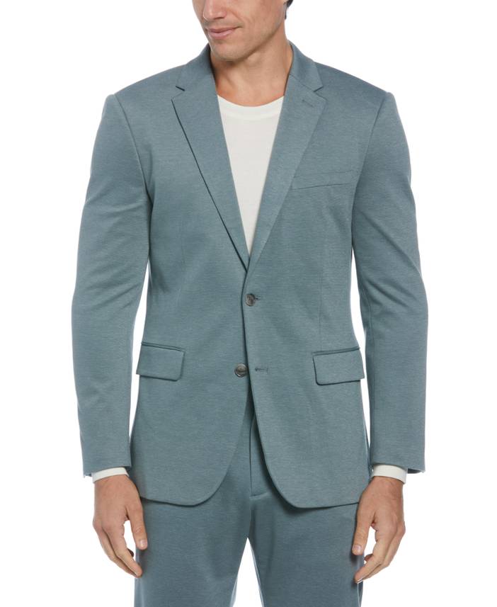 Men's Slim Fit Two Tone Smart Knit Suit Jacket in Goblin Blue, Size 40 | Short, Polyester/Nylon/Elastane, Solid
