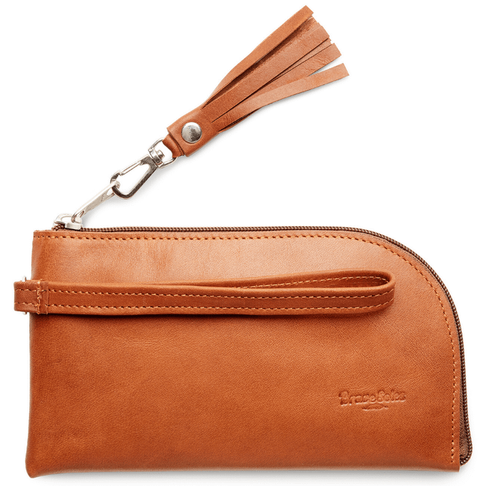 A sustainable leather wristlet handmade by artisans from locally sourced leather and upcycled materials. Shop now.