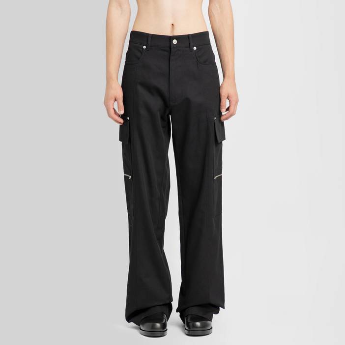 1017 Alyx 9SM men's black Satin Skater Pants - black - belt holes - button and zip closure - front pockets - side cargo zipped pockets - back pockets - 79% acetate - 21% viscose