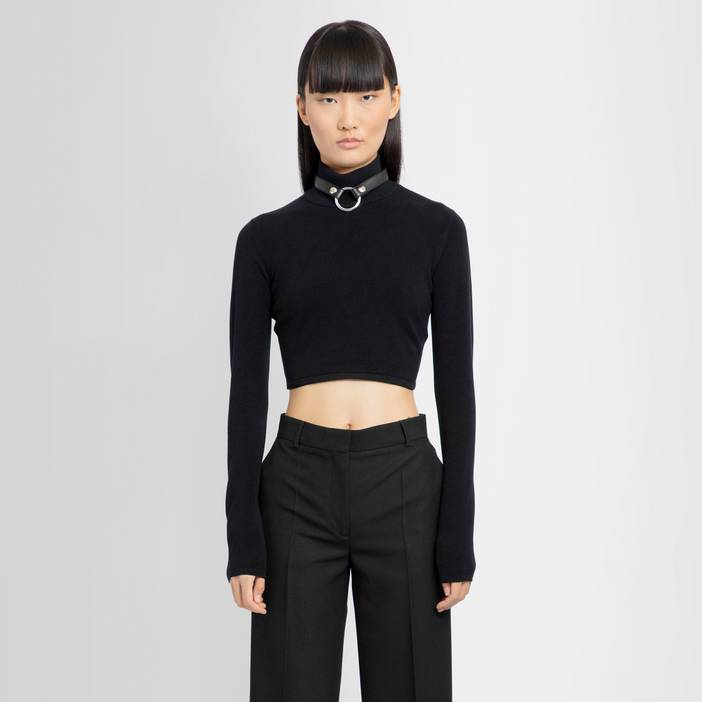1017 Alyx 9sm women's black Cropped Knit Turtleneck Sweater - black - knitted stretch viscose - turtleneck - long sleeves - ribbed hem and cuffs - cropped - fitted - 89%viscose - 8%polyamide - 3% elastane - made in Italy