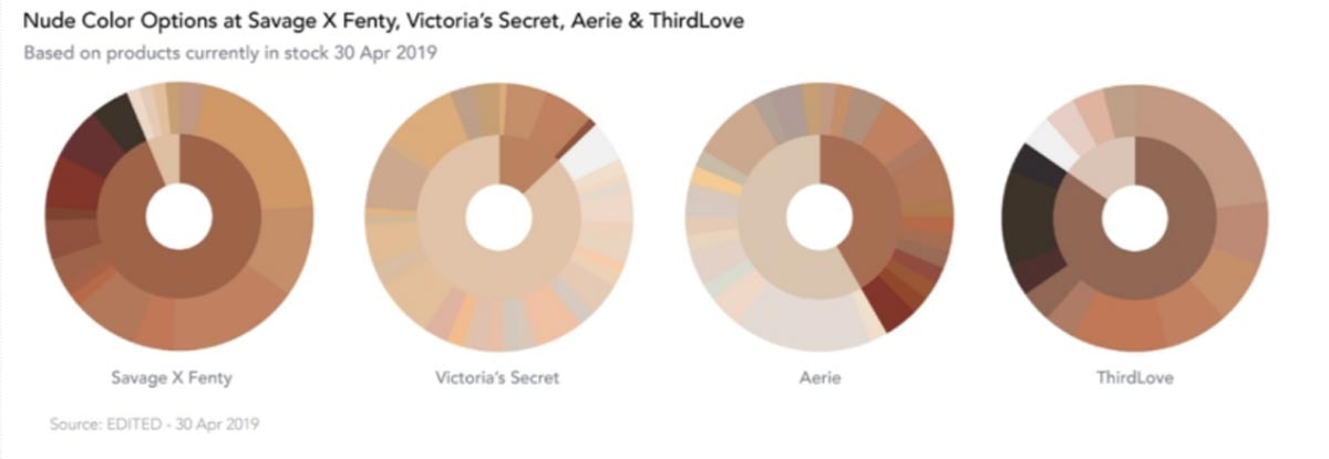 Competitors are also looking to catch up on color inclusivity. Last August, ThirdLove launched a campaign titled ‘New Nakeds’ introducing five nude shades to its basic T-shirt bras. Aerie’s T-shirt bra line is also available in four flesh-toned hues. Victoria’s Secret is still lagging behind, with two shades.