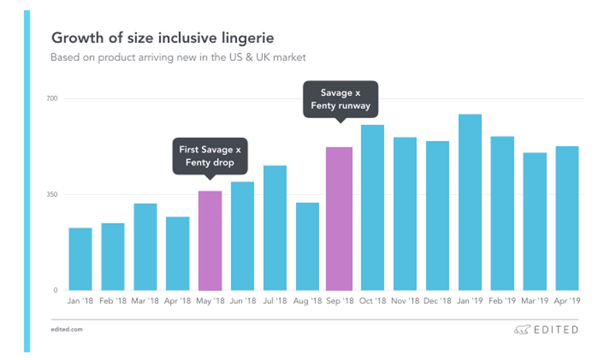 Seeing how Rihanna’s brand resonates with consumers has led other lingerie brands to change their ways. Since Savage x Fenty entered the market, US and UK retailers have increased the number of size-inclusive lingerie styles by 34 percent, according to Edited. “They are finally understanding that there needs to be a greater representation of sizes across products and in advertising”, noted the company.