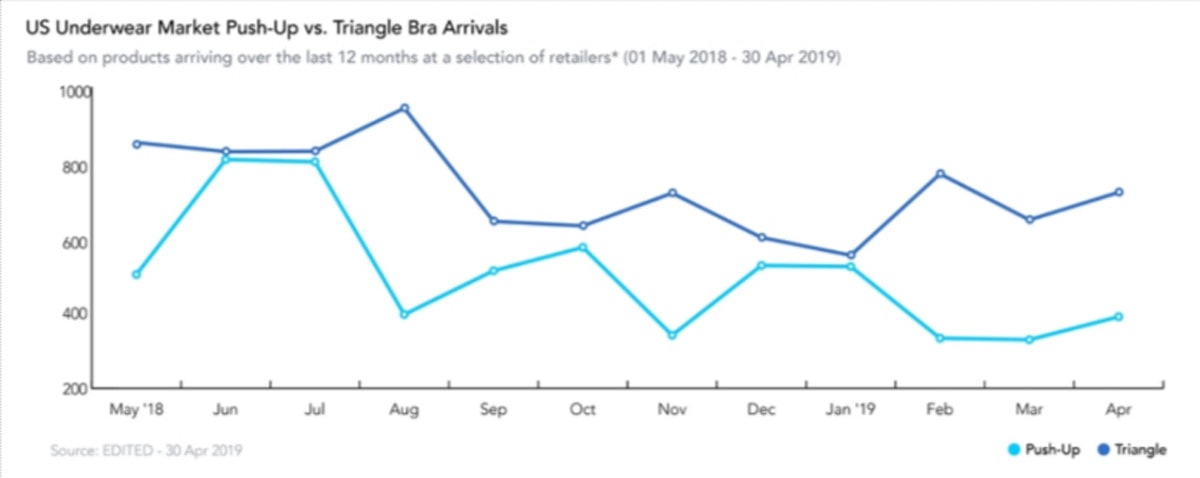 Rihanna’s label has inspired a shift in silhouettes as well. Push-up bras, a style synonymous with Victoria’s Secret and similar brands, are no longer the driver of the market. Bralettes and triangle bras comprise 42 percent of Savage x Fenty’s offering, while push-up bras only form 6 percent of the assortment.