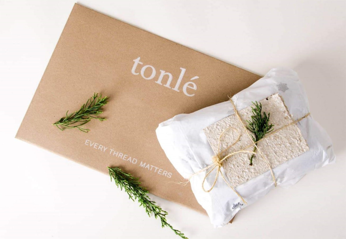 Meet Tonlé, the San Francisco-based womenswear brand made entirely from surplus fabric discarded by apparel manufacturers in Cambodia. The brand’s motto is “every thread matters”: the scraps they cannot transform into new clothing are cut into strips and individually hand sewn into “yarn” for new clothes. The scraps left after that are mixed with recycled office paper and sticky rice to make tags. Working in this fashion leaves 2-3 percent waste, compared to an average of 40 percent in a typical factory, the company claims on its website. Packaging is made from recycled paper and cardboard -- except when wholesalers or warehouses specifically demand a plastic wrap.