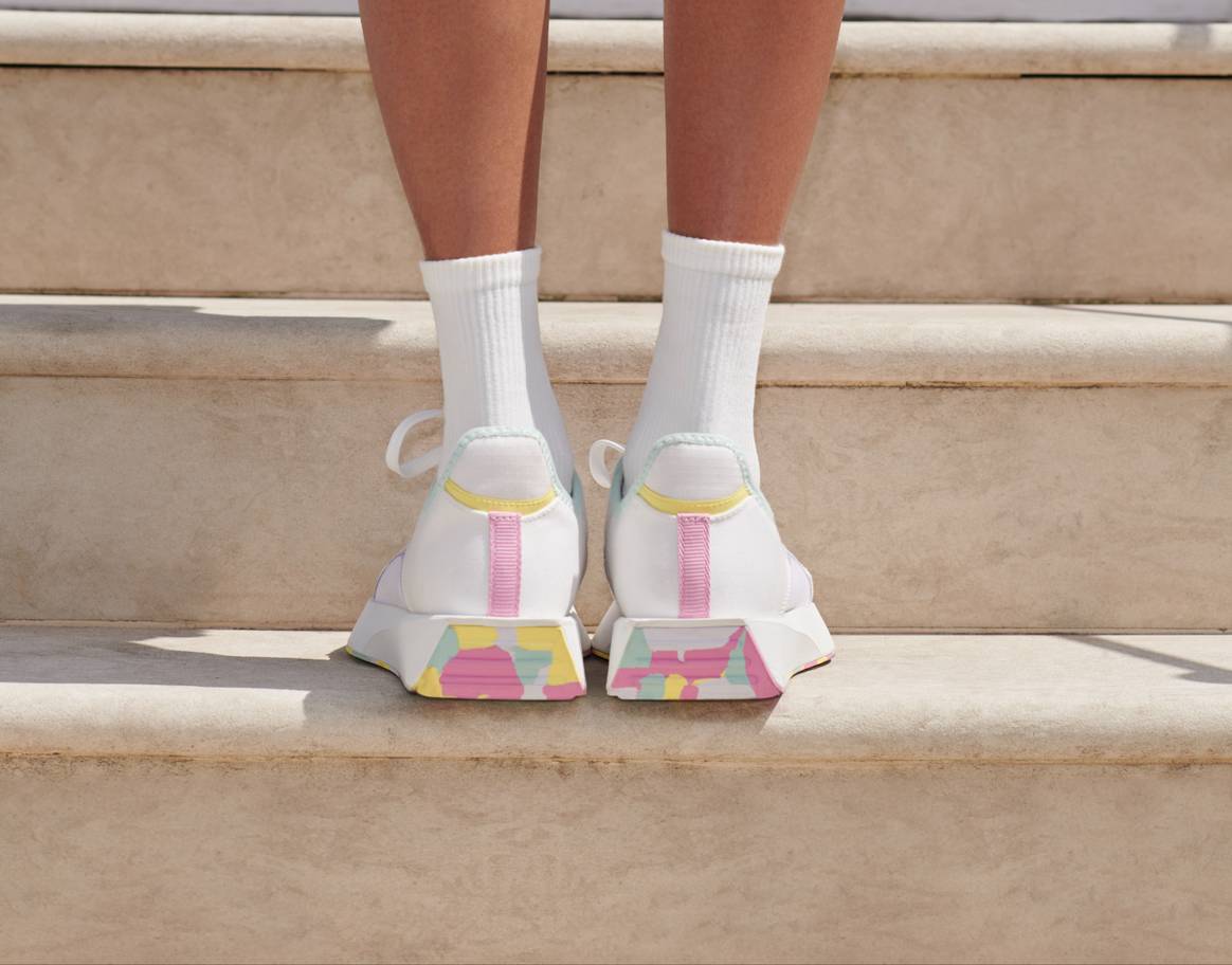 For the sneaker collaboration, Rubin has injected her signature pastel aesthetic into Allbirds’ Riser silhouette taking inspiration from the pastel hues of Notting Hill’s townhouses. The new Riser features natural materials, including an upper made from organic cotton and ZQ-certified merino wool.
