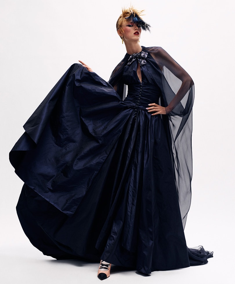 “I was thinking about a punk princess coming out of ‘Le Palace’ at dawn,” explains Viard in the show notes. “With a taffeta dress, big hair, feathers and lots of jewellery. This collection is more inspired by Karl Lagerfeld than Gabrielle Chanel. Karl would go to ‘Le Palace’, he would accompany these very sophisticated and very dressed up women, who were very eccentric too.”