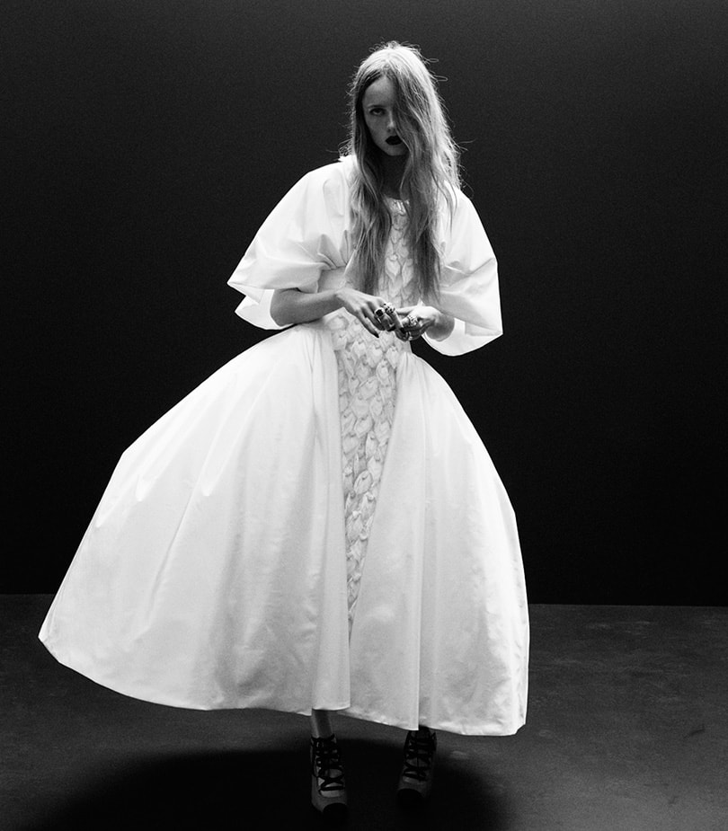 While others on the haute couture schedule have opted for big-budget whimsical productions like Dior with its cinematic world filled with mermaids, nymphs, and tree-people, and Giambattista Valli showcasing his magnificent tulle alongside shots of Paris, Chanel opted for a just 1 minute 22 seconds of the models showcasing the looks against a plain backdrop with some awkward dancing. A little disappointing after the teaser shot by Loïc Prigent captured black and white behind the scene glimpses of the Chanel atelier.