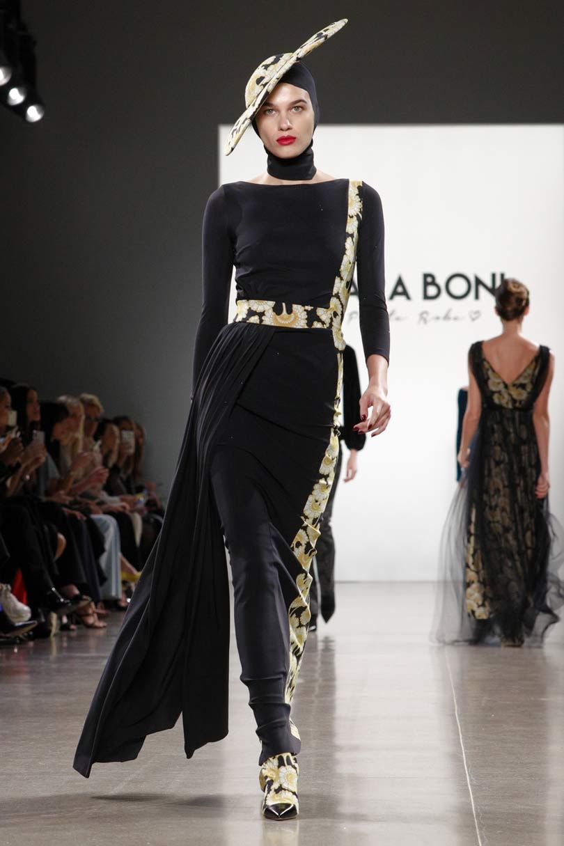 While her use of color was more muted including black, dark green, and dark gold, the brand also introduced more luxurious textiles such as velvet and taffeta. She didn’t forget her signature jersey fabric, which is perfect for the traveling girl who wants comfort. While the jet-setting socialite look of the eighties with the white shoulder pads and form fitting corsets is thought to be long gone, Boni managed to update it for a contemporary woman of today.