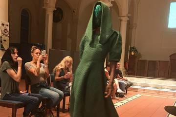 Last week, he held a fashion show at the Church of Holy Apostles in New York's Chelsea neighborhood. The church is a space used by TheSet, an organization that hosts numerous art gatherings to showcase to the public while staying within a small budget. The architecture and ambiance offered a welcome attribute that is often hard to find for spaces in New York City.