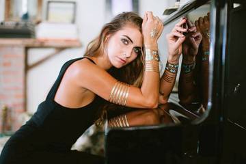 The trend started a couple years back when Dior and Camille Miceli introduced a limited edition flash tattoo collection. The line included earrings, bracelets, and cuffs that had bits of 24 carat gold. The popularity of this trend didn’t hit until 2014 where it became prominent in popular music festivals in Southern California, such as Coachella and Burning Man. In Paris Fashion Week, Dries Van Noten and Tommy Hilfiger had forms of gold or black flash tattoos, igniting the temporary accessories as a Spring/Summer 2015 trend.