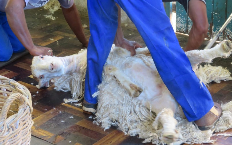 The investigation marks PETA’s first expose into the production of mohair. The organisation states that shearers, who are paid by volume rather than per hour, “worked quickly and carelessly, leaving goats cut up and bleeding, and roughly stitched them up without giving them any pain relief.” In addition, a number of goats were brutally killed after shearing, with one worker at a farm cutting the throats of conscious goats with a dull knife before breaking their necks, according to PETA investigators.