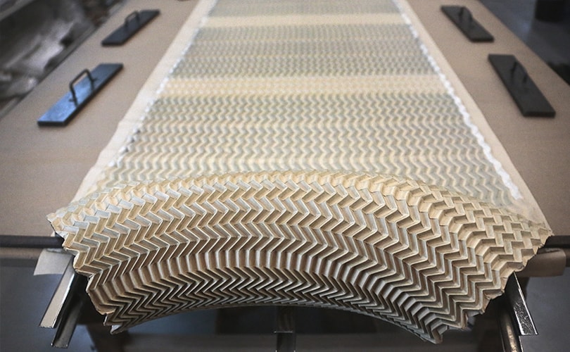 Coated, flat or box pleats, rounded pleats, flexible pleats for draping effects, accordion pleats, Watteau pleats describing a succession of box pleats flared at the bottom, sunburst pleats at very close intervals that expand, Fortuny pleats inspired by Greek woollen tunics, not forgetting cutaway, flower, peacock, pyramid, ribbon and origami pleats, the technique used to create pleats always uses a unique Kraft board mould or pattern (about 3,000 in stock) the oldest of which date back to 1900. The production processes have not changed since the start of the 20th century. Firstly, the fabric is ironed and made flat (silk, crepe, tulle, muslin, organza, velvet, as well as other materials such as leather or polyester), then it is placed parallel to and next to the cardboard mould, rolled up in it then put into an oven at between 85°C and 100°C for a period of between 1 hour and 1 hour 30 minutes depending on the fabric. It is then left for a day to allow the entire mould to cool down so that the fabric can definitively take the form of the pleat, before it is taken out of the mould. And it works like magic!