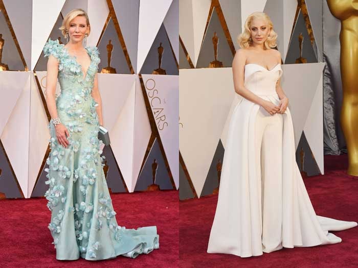 White is not the easiest color to wear for most women. But Hollywood's A-listers are fearless. Rooney Mara, competing against Vikander in the best supporting actress category for her role opposite Blanchett, looked edgy in a long-sleeved white Givenchy lace gown with a diamond midriff cut-out.