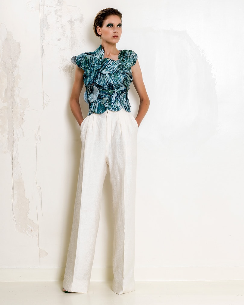 To highlight sustainability and the uniqueness of each garment even further, all the couture pieces from what he is calling the ‘manifesto collection’ will be sold but in other fabrics, depending on the fabric waste available to “reaffirm the need for creativity and to always re-enchant reality, despite or because of the difficulties”.