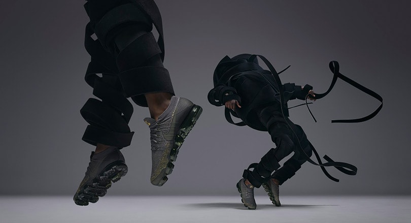 "The first idea came to life as an ode to all things airborne, with the lightness and flexibility of the Nike Vapormax providing a direct reference. The transparent air cushioning unit that acts as a standalone outsole inspired me to create a flawless outfit that creates harmony between body and environment.”