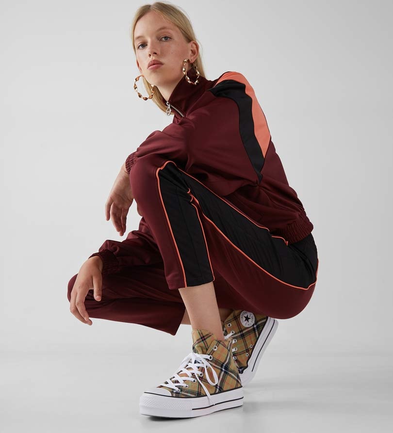 Bershka, one of the brands owned by Inditex, is launching an exclusive collection of Converse sneakers today. With prices ranging between 75 euro (approximately 86 US dollars) and 85 euro (98 Us dollars), the four sneaker styles are being released alongside Bershka’s Fall 2018 collection. Each shoe has an outfit to match.