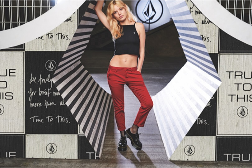 The Californian-brand spent a number of months working together with the British model, who is also a Volcom Women’s brand ambassador developing the collection. The debut collection inspired by classic skate culture, as well as 1970s styling with a hint of feminine edge.
