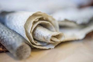 Fish leather is a by-product of the seafood industry and recycling the waste minimizes landfill and keeps resources in use for longer. Atlantic Leather uses fish from Nordic governmentally regulated sustainable farms, skins are sourced locally from nearby fisheries. Sourcing and processing happens close to home which shortens transport routes, lowers carbon footprint and increases transparency across the supply chain. Fish leather does not require the resources or leave the carbon footprint associated with raising cattle, and does not use endangered species that could threaten biodiversity. Geothermal energy from Icelandic volcanoes is used to power the production processes and production has provided new job opportunities for coastal dwelling communities. Plus, as a material it possesses strength nine times that of regular cow leather of similar thickness owing to its criss-cross arrangement of fibers.