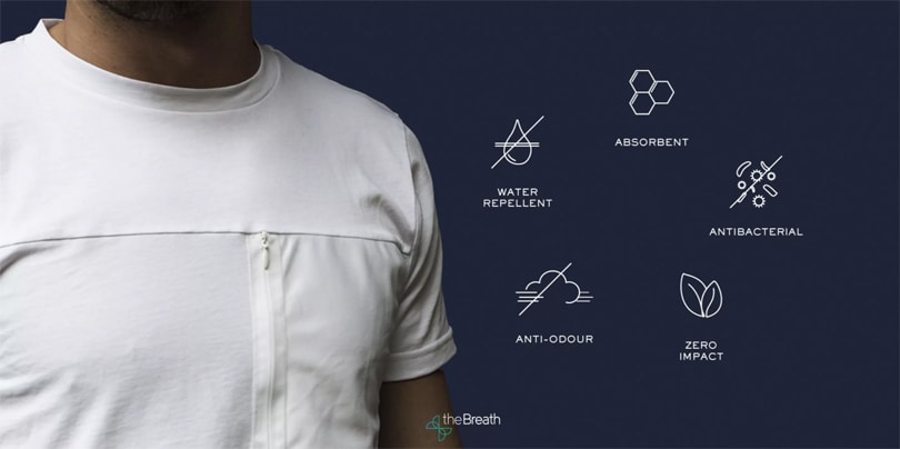 With more than 2 billion t-shirts sold each year, undergarment start-up Kloters asked themselves what would happen if there was one t-shirt that could help combat air pollution. The end result of their work is the genderless RepAir t-shirt, designed in Milan and produced in Italy, which utilises "the Breath", a patented material that is able to capture pollutants including NOx, Sox, bacteria as well as unpleasant odours.