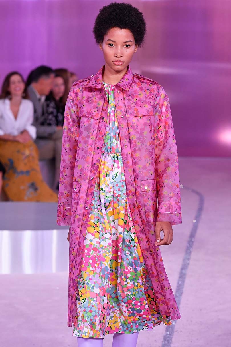 The collection was rooted in the brand's DNA: color, fun, joyfulness for spirited women, sophisticated and feminine, yet wearable from day to evening. Kate Spade's spring/summer 2019 is one of pale lilac, hot pink, dark green, chartreuse, florals and print, with block-heeled sandals and knee-high boots, and liberal use of the spade symbol.