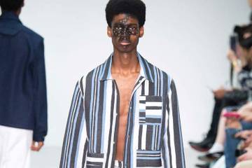 NudityThere was plenty of male flesh on show during London Collections, but it was the exposed nipple, an ongoing dilemma of acceptable nudity on social media, that broke new terrority for British designers. As seen at Christopher Shannon, Nazir Mazhar, and Craig Green, there were knitted tank tops and jumpers with cut away spheres, sportswear with undone bikini tops as necklaces, and sheer long sleeve tops, a staple at J.W. Anderson. There was a further baring of flesh at Sibling, where knitted jockstraps were worn under couture-stitched football gear, with models bums on show, although this look was unique.
