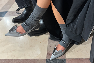 Miu Miu's suede loafers with logo exemplify this trend towards a nostalgic, almost melancholic aesthetic. This is in tune with the collective feeling of the season. This line is also represented by The Row's Dune sandals. These traditional flip-flops, which have a "Y" shaped strap, have boosted the firm to its best ever position in the ranking.